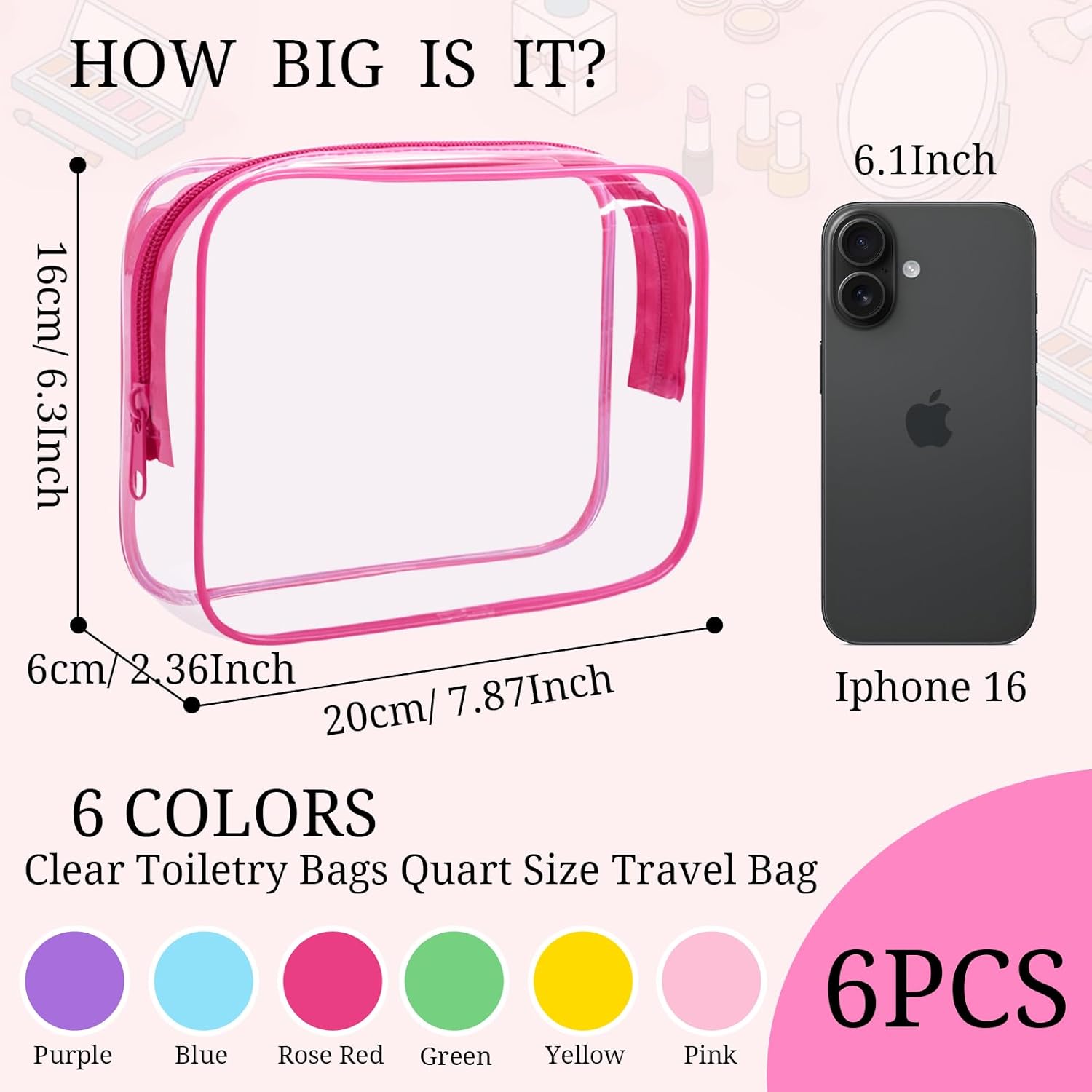 - 6 Pack Clear Makeup Bags - Satisfy Your Daily Needs: Package includes 6pcs clear cosmetic cags with Zipper. Sufficient quantity and various sizes can meet your daily needs.