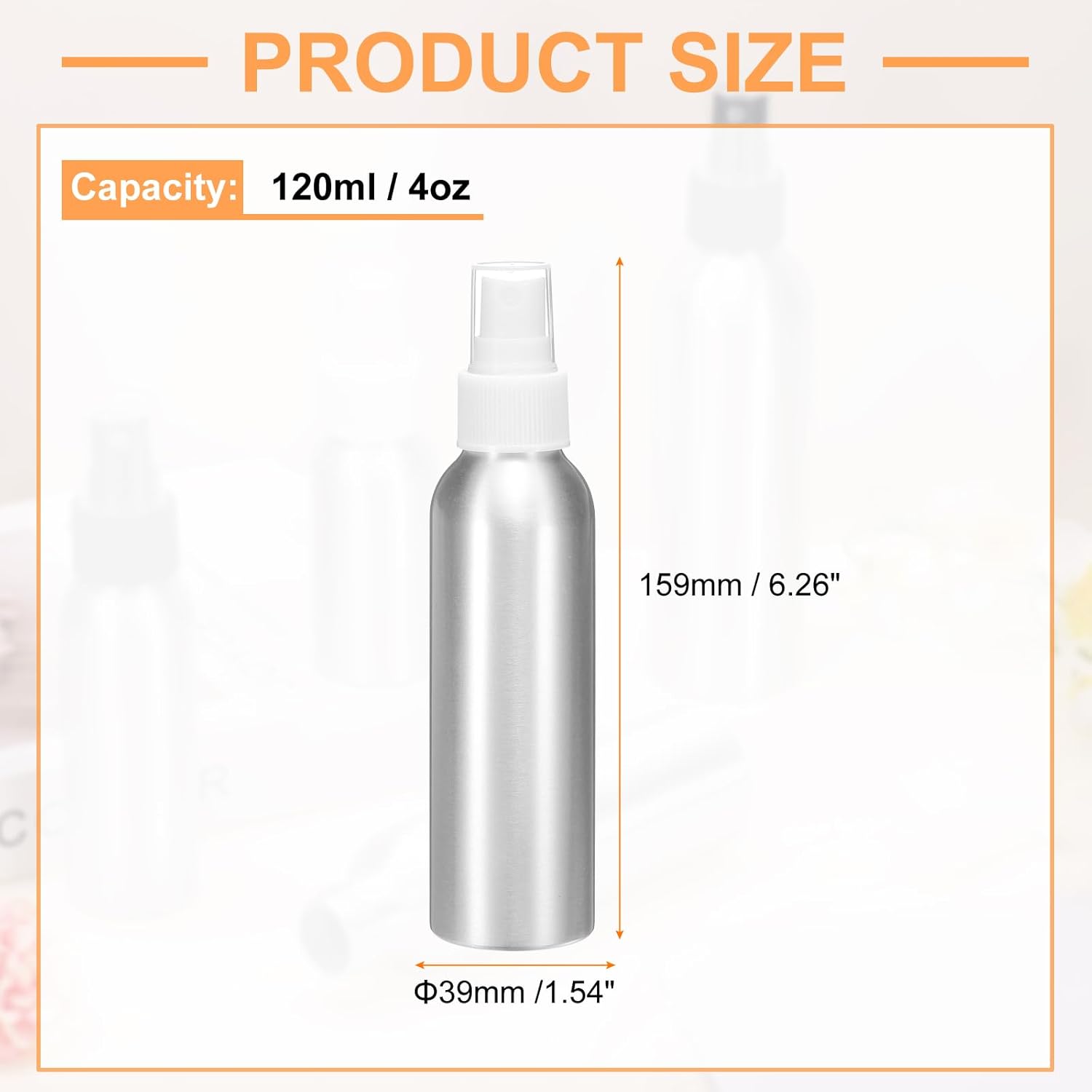 - Size - 120ml / 4oz capacity ; Total Size: 159 x 39mm / 6.26" x 1.54"(L*W). The nozzle design can spray a uniform and delicate atomized liquid, which can be used to store perfume, toner, lotion, spray or other liquids, etc.