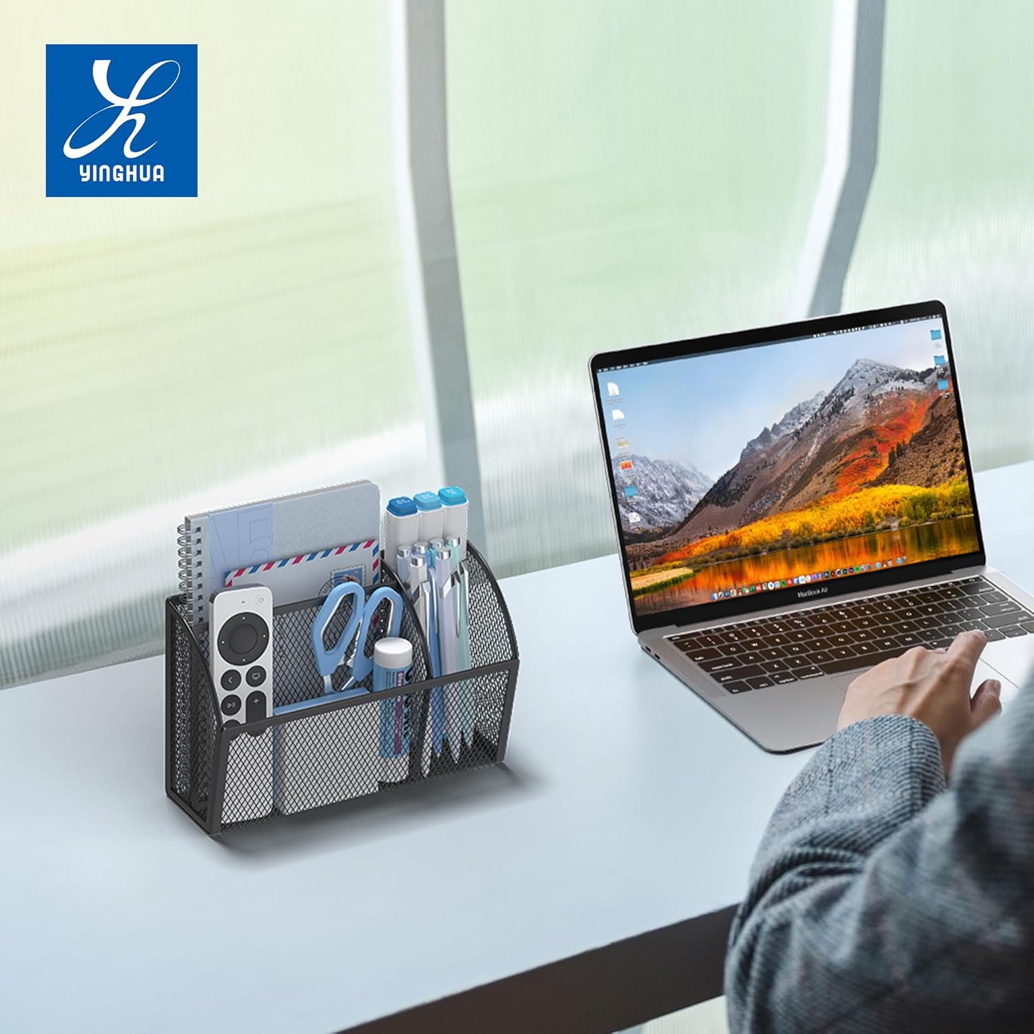 - Strong Magnetic Grip for Multi-Surface Use β This Black 3-compartment metal mesh desk organizer securely attaches to whiteboards, refrigerators, lockers, and other magnetic surfaces with its powerful built-in magnets. The sturdy hold keeps your pens, pencils, and small essentials in place while freeing up desk space. Perfect as a pen holder for desk, office organizer, or classroom pencil holder