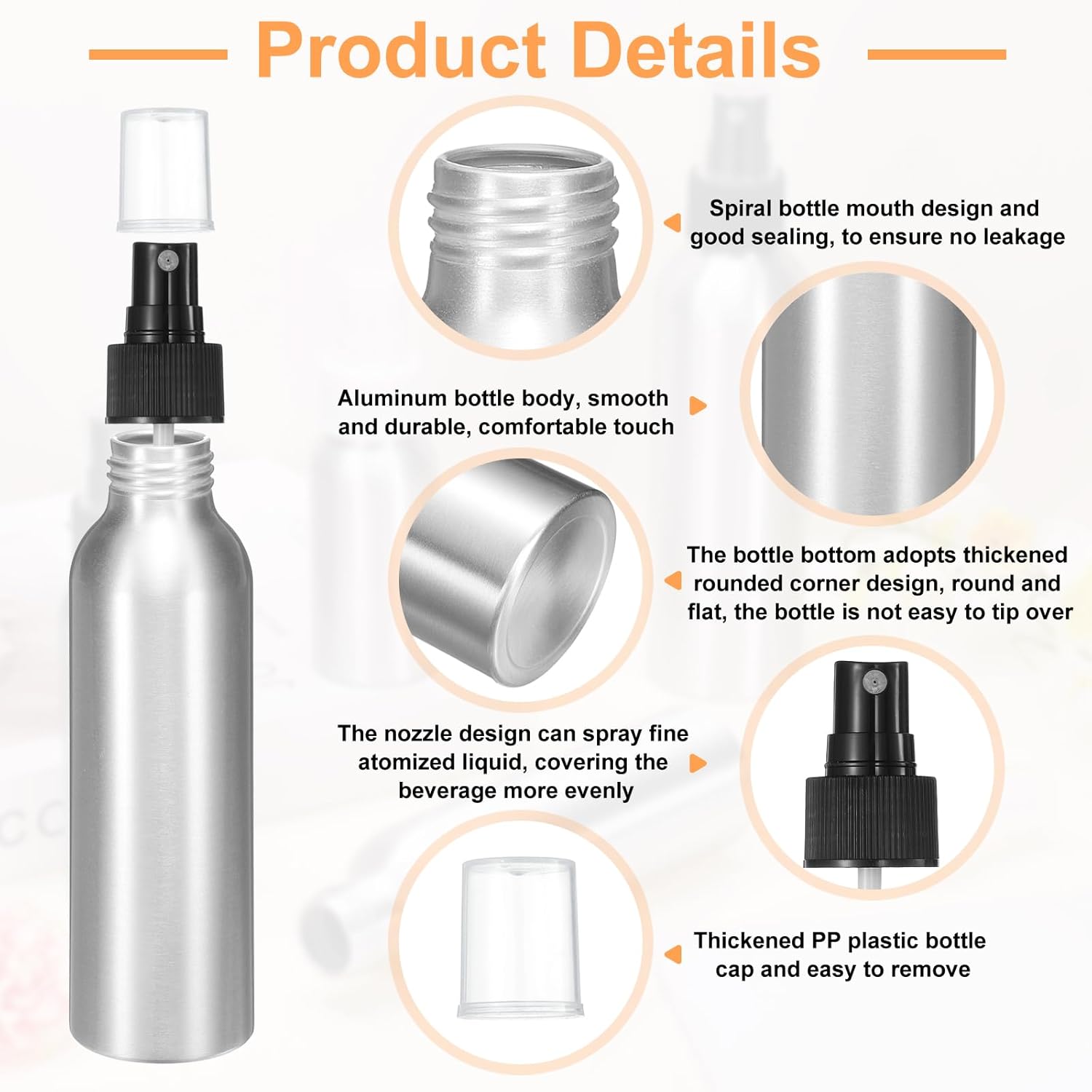 HARFINGTON 3pcs Aluminum Fine Mist Spray Bottles 120ml/4oz Metal Small Liquid Alcohol Refillable Travel Container with Black Plastic Nozzle Cap for Perfume Skincare Cosmetic Storage Bottle
