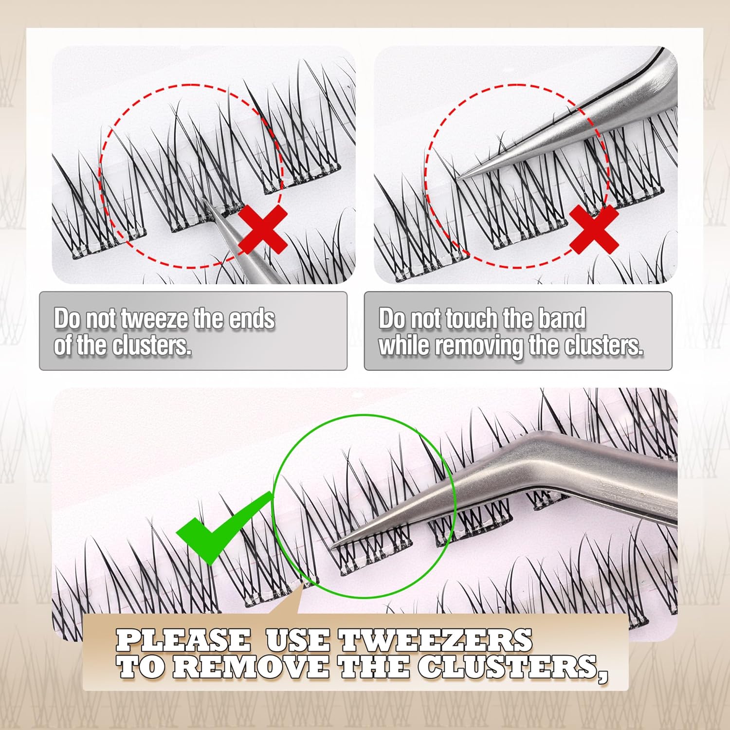 - ONLY ONE STEP No Glue Needed: If this is your first time applying eyelash clusters, don't worry! Our self adhesive eyelash clusters are beginner friendly. With our self adhesive lashes clusters, no tricks, no waiting, ready in seconds and ready to wear in ONLY ONE STEP!