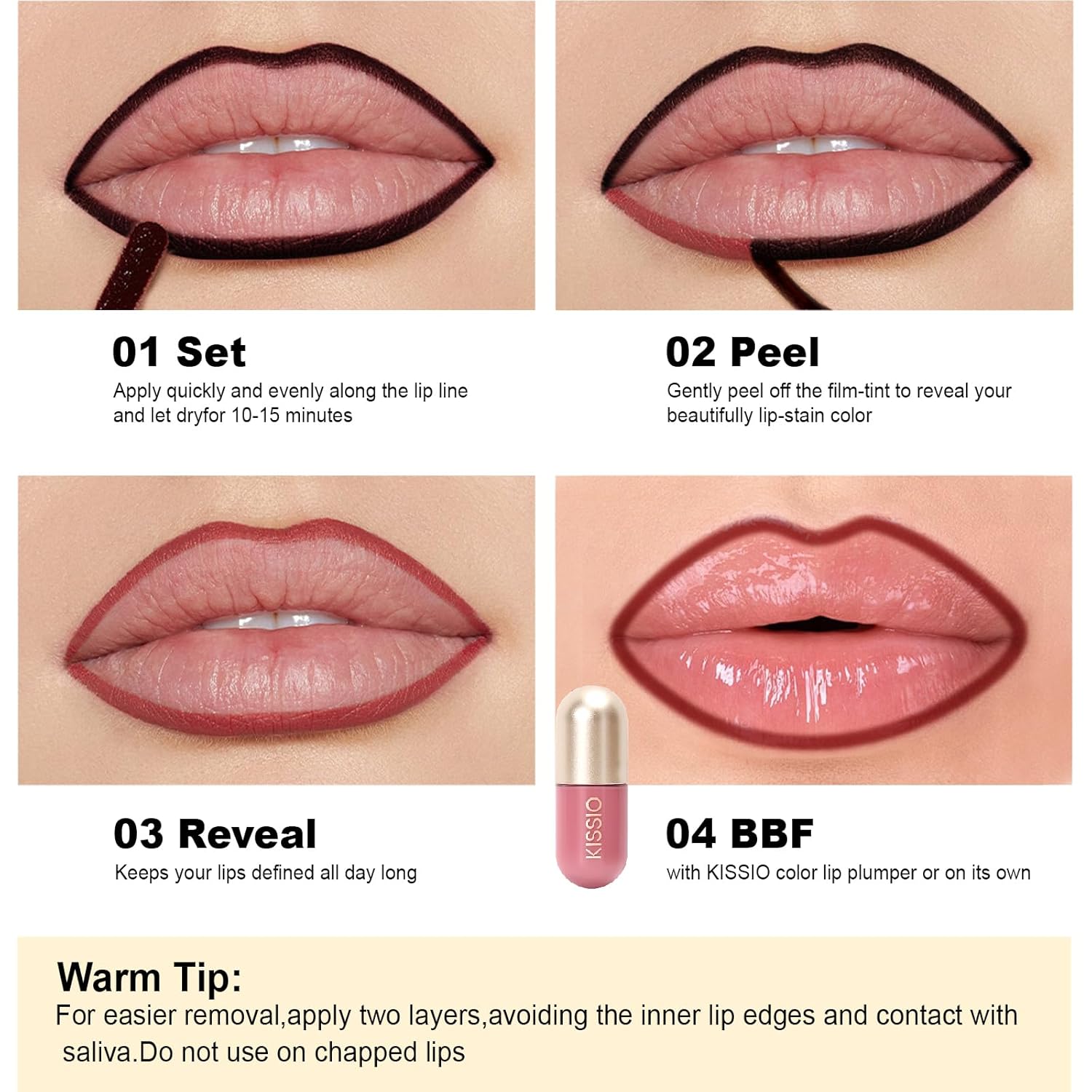 KISSIO Lip Liner Stain,Peel Off Lip Liner,Transfer Proof,Long Lasting and Waterproof,Lips Tint Tattoo,Natural Makeup Stain,Matte Finish,Berry