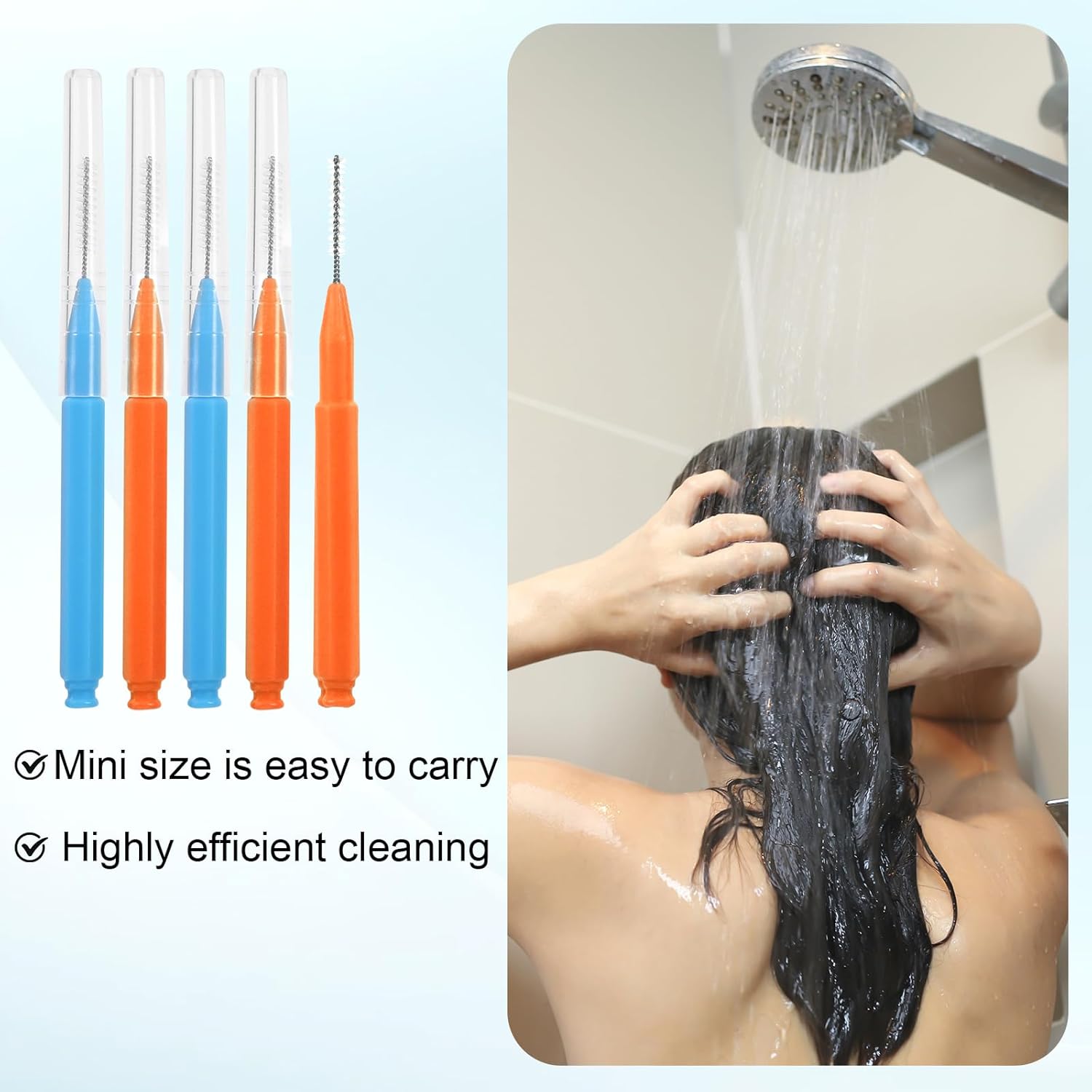 - Package Includes - This shower head cleaning brush package contains 40 showerhead cleaning brushes and 10 nozzle unclogger picks. There are enough shower head cleaning brush small hole for you to use for a long time, which can meet your needs in different aspects
