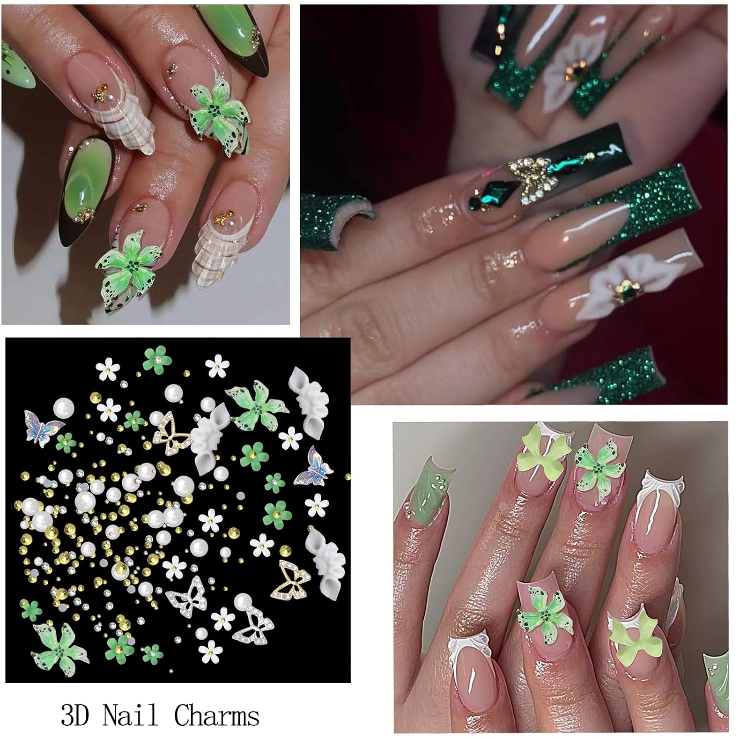 4 Boxes Green Nail Gems Bow Flower Nail Charms for Acrylics - Irregular Crystals, Nails Rhinestone & Accessories for Women Nails Art Design Nails Decor(Green)