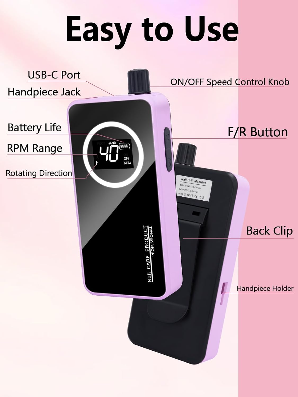 - PRO-GRADE NAIL DRILL WITH PRECISION CONTROL: This electric nail drill machine features an intuitive speed knob and a crystal-clear LCD display, letting you effortlessly adjust speed from 0 to 50,000 RPM. Perfect for beginners learning nail care or pros demanding salon-perfect finishes