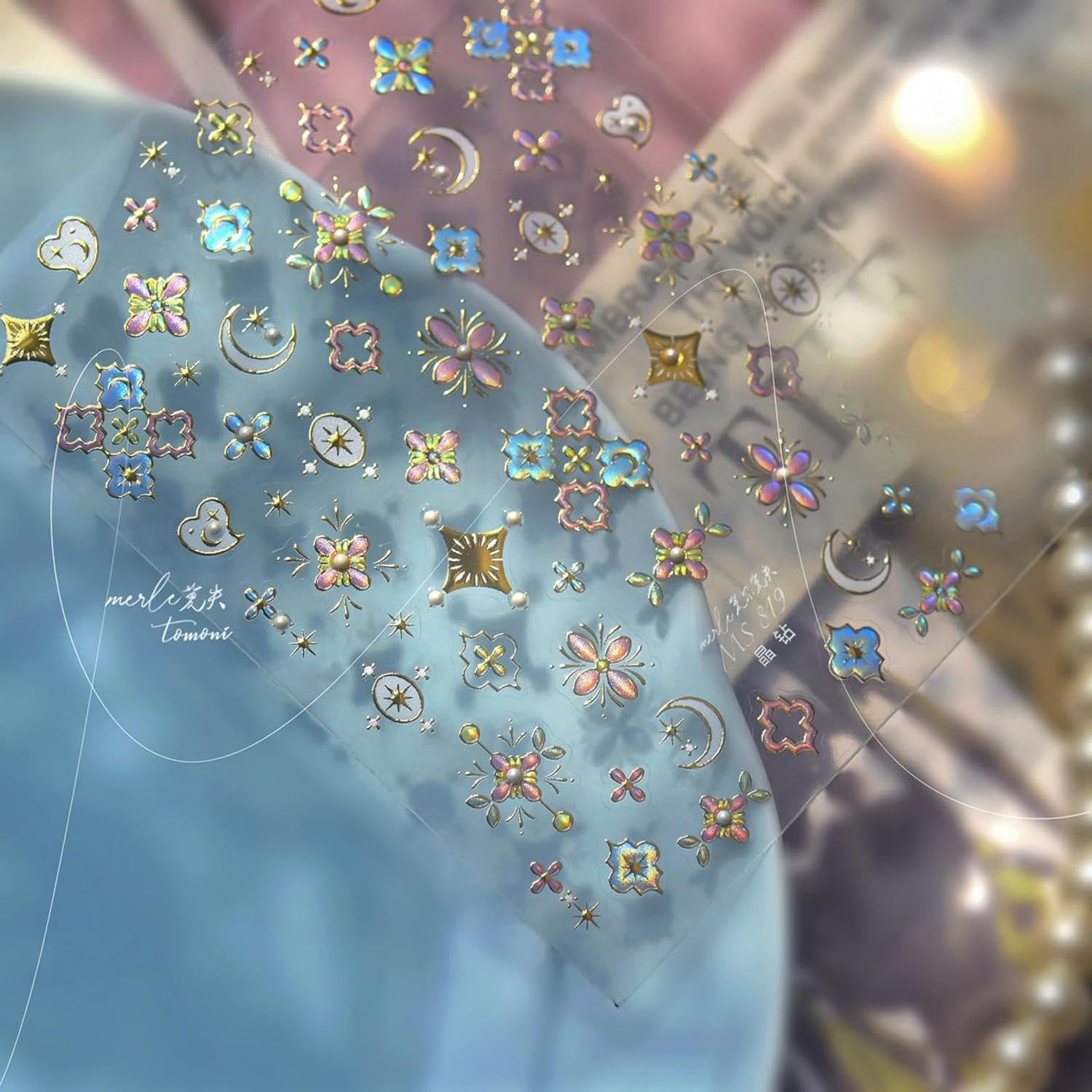 1 Sheet Star Nail Stickers 3D Self-Adhesive Silver Moon Nail Decals 5D Embossed Pink Star Nail Supplies Bohemia Nails Designs New Chinese Style Nails Manicure Accessories for Women