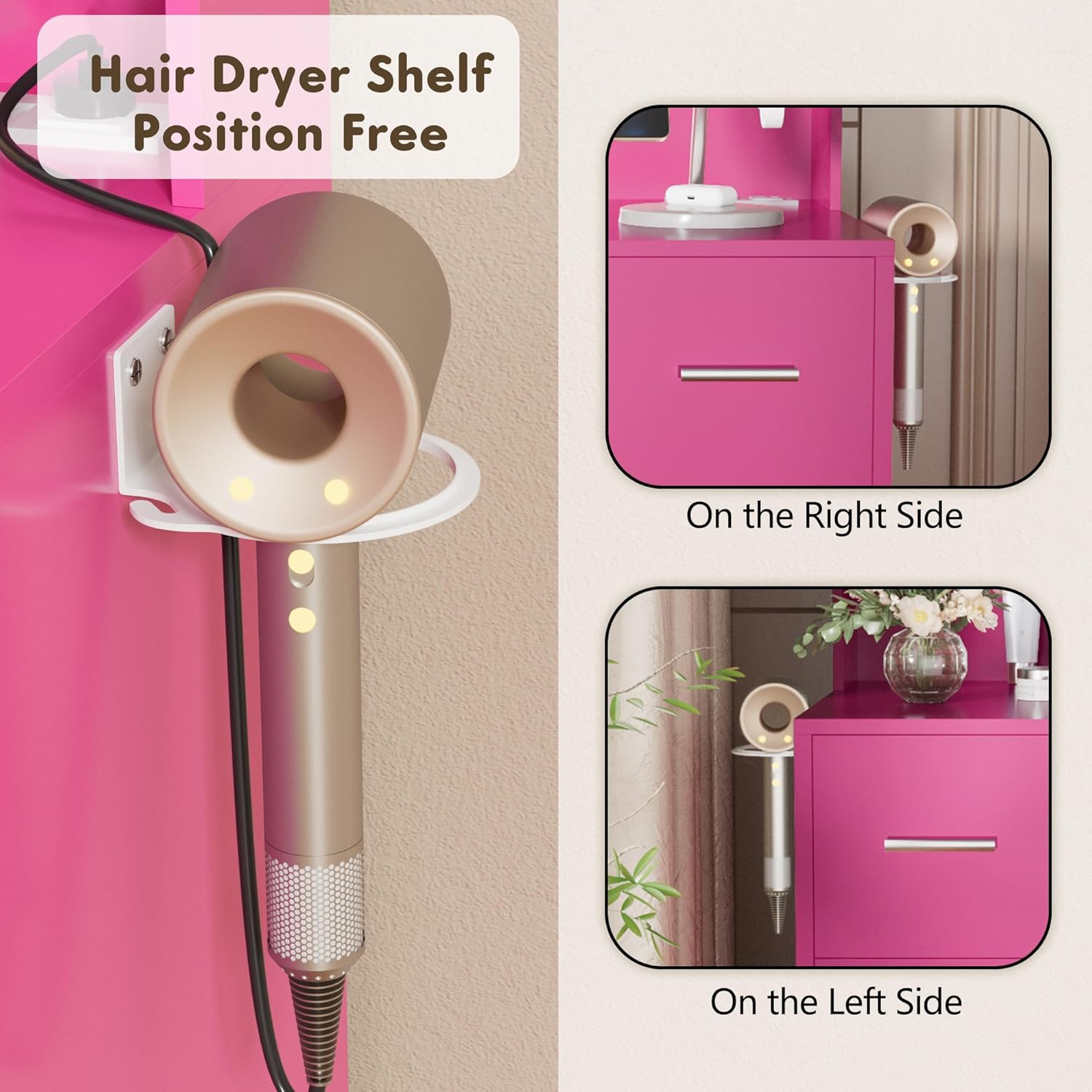 YESHOMY Vanity Desk with Mirror, Power Outlet and 10 Lights, Makeup Table with 7 Drawers, 3 Color Modes Available for Bedroom, Rose Red
