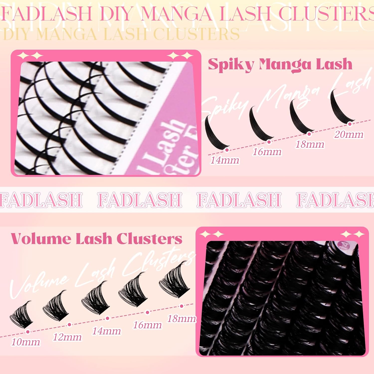 Lash Clusters 100D Eyelash Clusters 10-18mm Spikes 14-20mm Thick Volum Manga Lashes with D Curl DIY Fairy Lash Clusters with Spikes by FADLASH