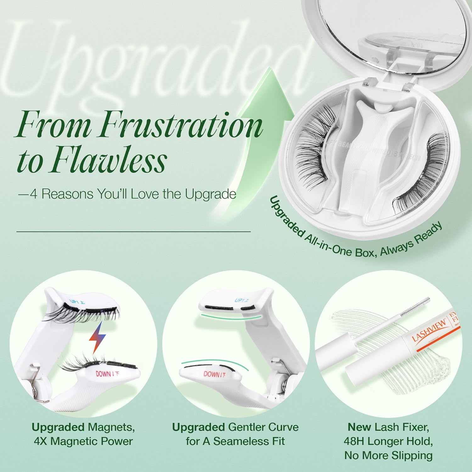 - 【4X Stronger Magnets + Fixer: 48H Hold [New Upgrade]】Say goodbye to slipping lashes or midday touch-ups—this upgraded set boosts staying power with 4X stronger magnets (vs. traditional magnetic lashes) and a brand-new exclusive lash fixer. Each lash has 2 extended, reinforced magnets, and when paired with the fixer, it locks your look in place. Wear confidently for up to 48 hours—no lifting, no shifting, just perfect lashes all day