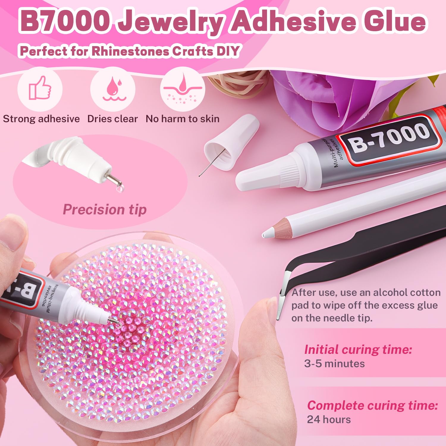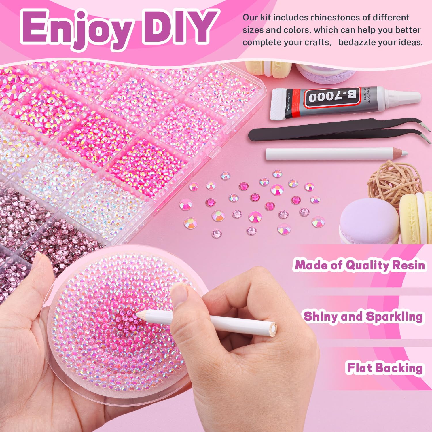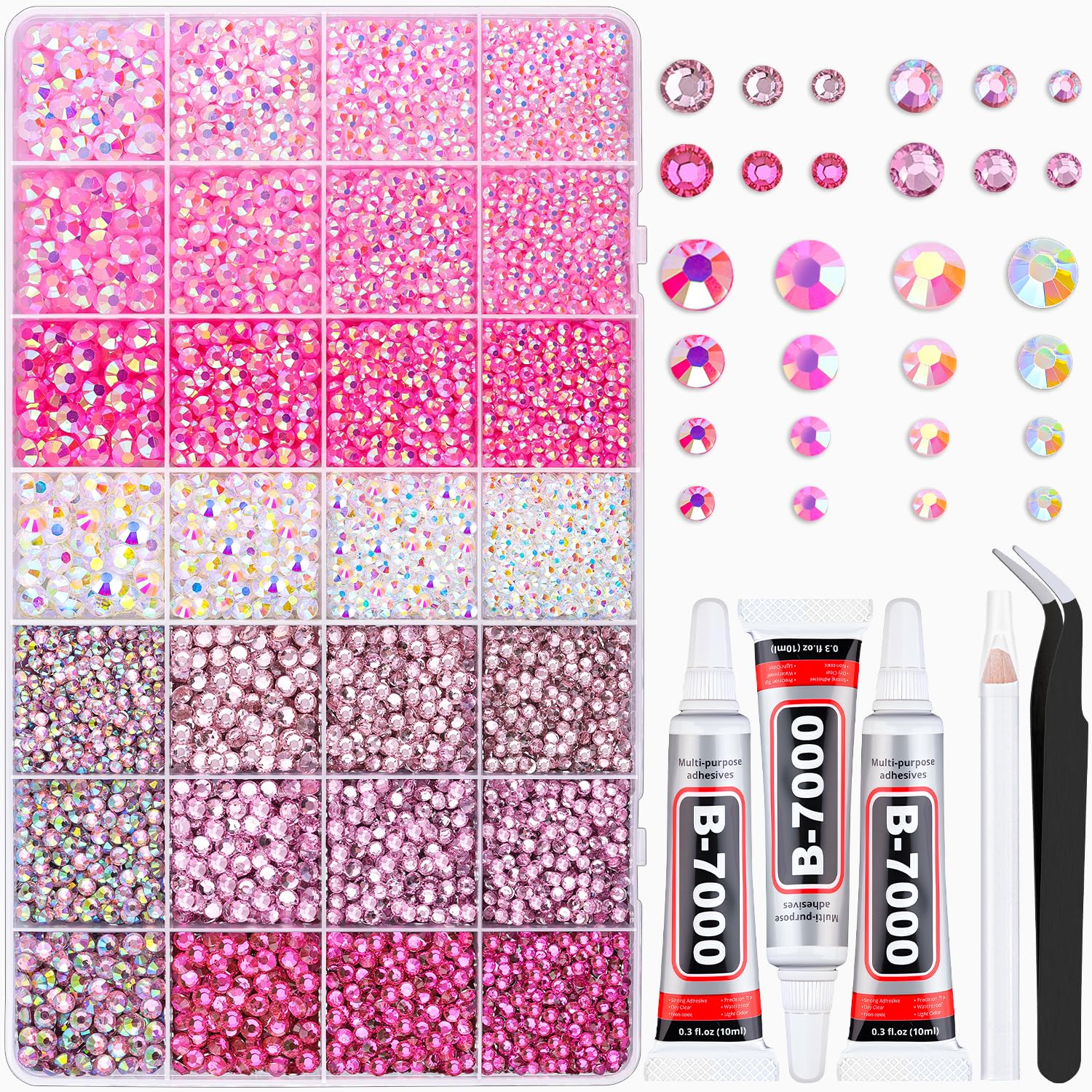 20000Pcs Pink Rhinestones for Bedazzling with 3Pcs B7000 Jewelry Glue, Resin Rhinestones for Crafting Crafts,Bedazzler Kit Flatback Gems for Clothing Shoes Tumblers Nail Art