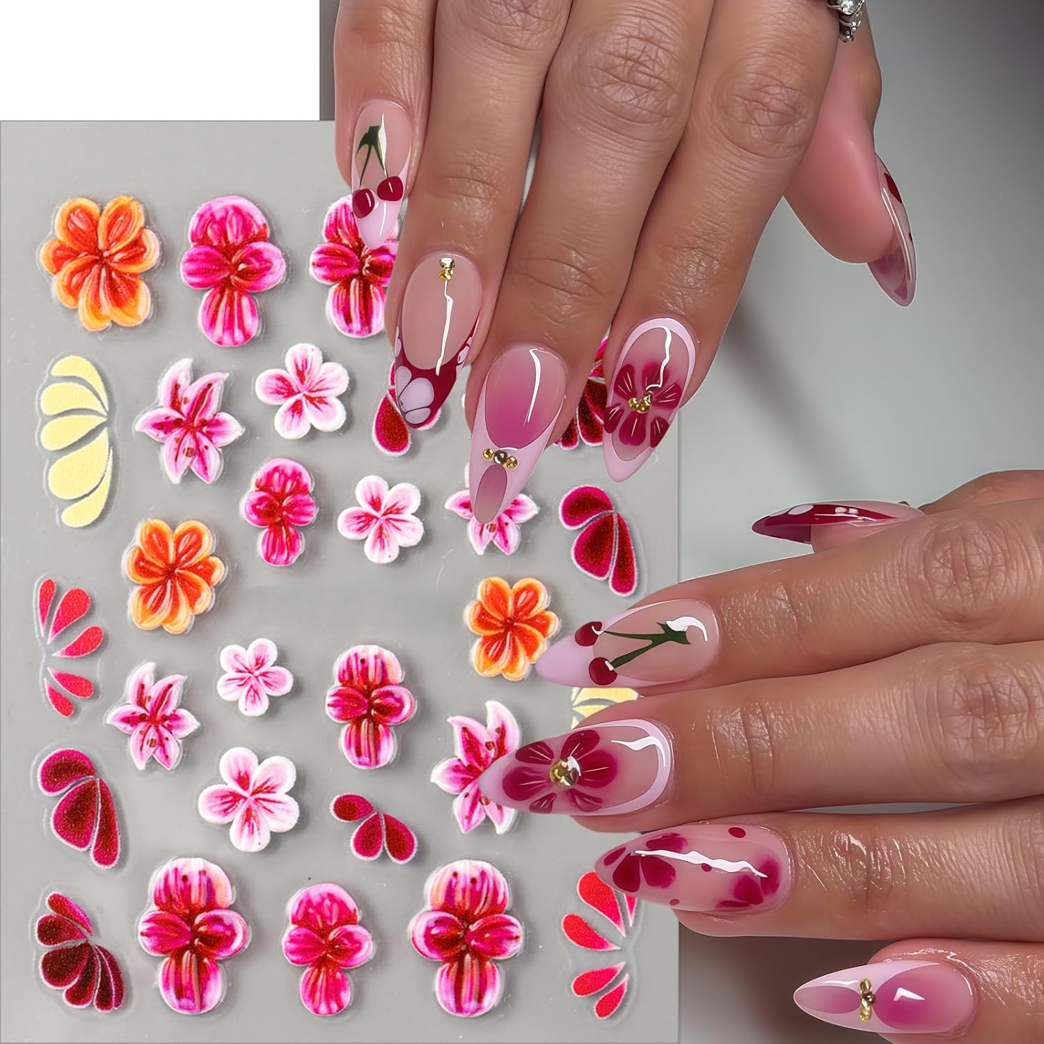 - Beautiful Design: 5D red hibiscus nail decals made from environmentally friendly material, the pattern is clear and beautiful,suitable for nail artists, nail enthusiast as well as women of all ages