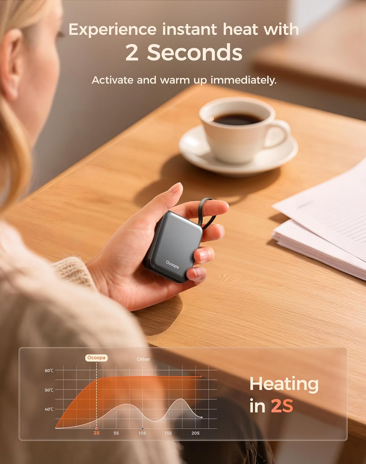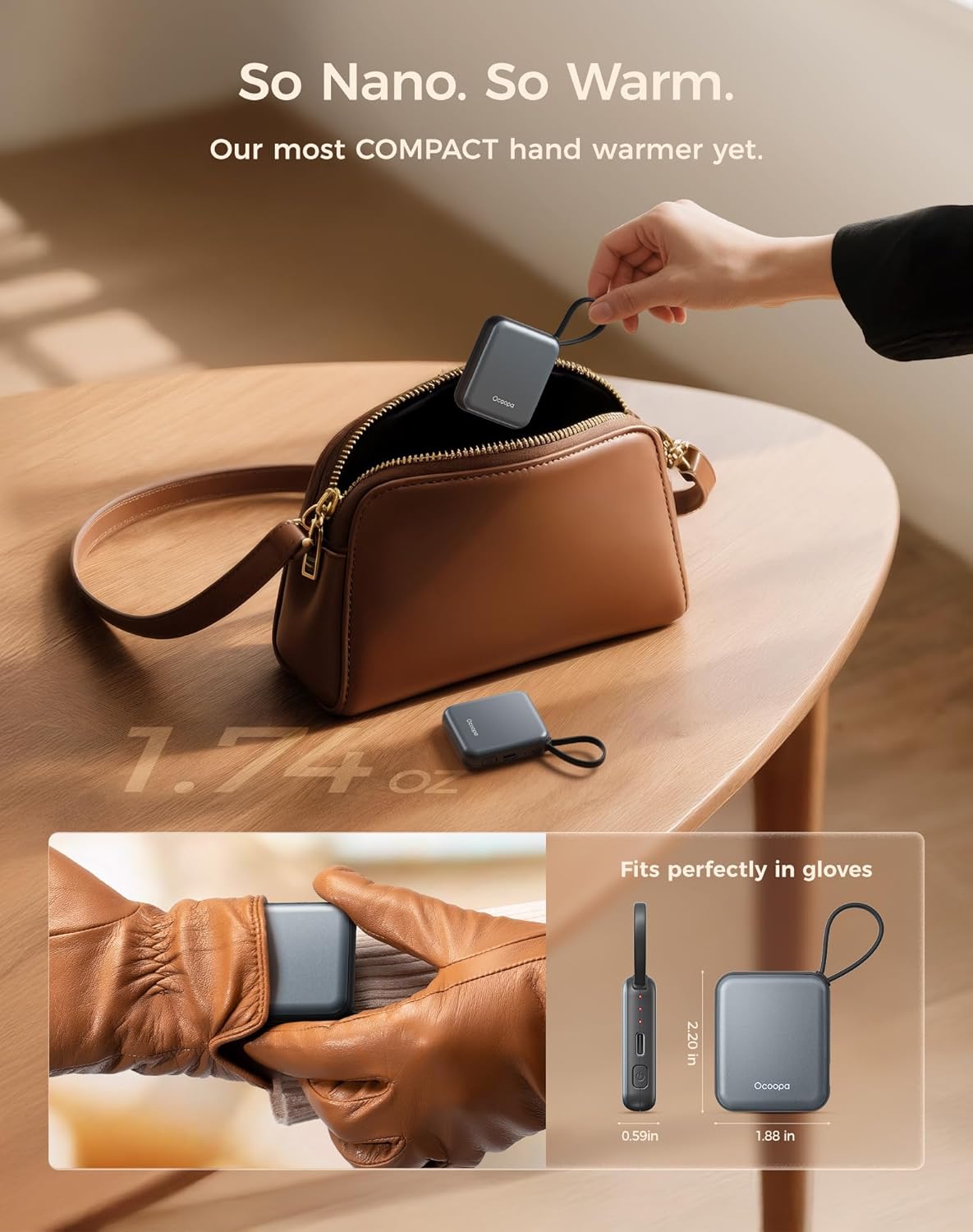- Ultra-Nano Size – Designed for Her Hands: This ultra-slim rechargeable hand warmer smaller than your palm, lighter than a lipstick. UT5 Nano fits perfectly in gloves, pockets—even wallets. Tailored for women who love warmth without the bulk.