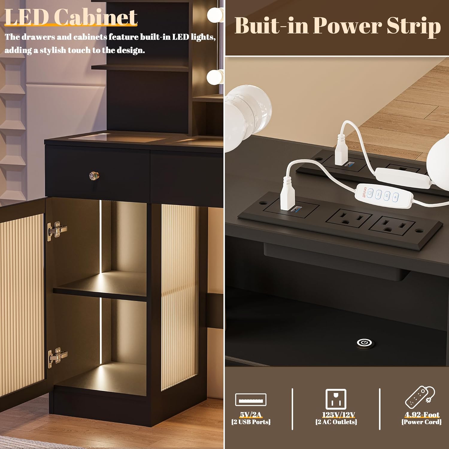 - : Style Black Vanity with Power Outlet