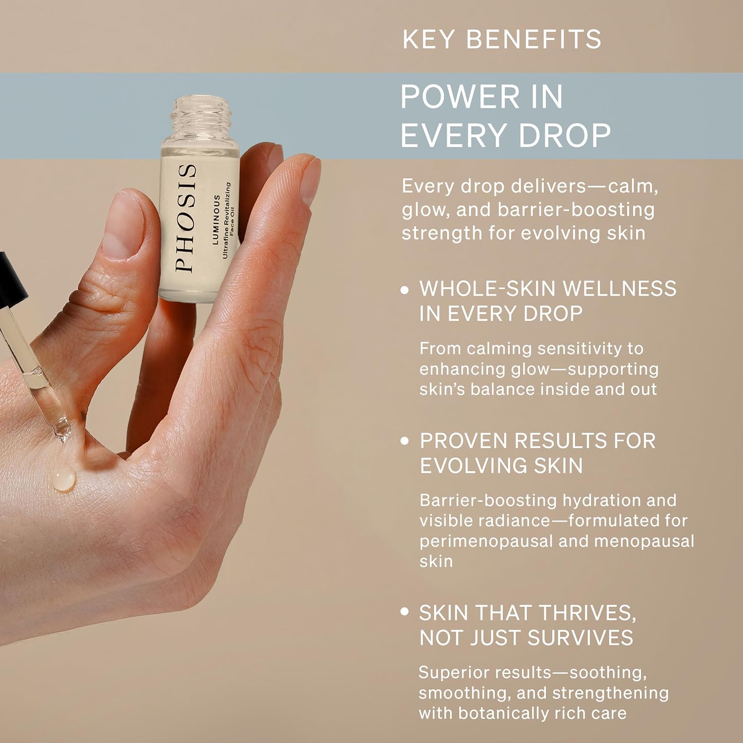 - RESTORES GLOW AND LOCKS IN MOISTURE – Phosis face oil for women delivers instant facial glow and deep skin recovery using an ultrafine texture. Lock in moisture with this beauty elixir—perfect for menopausal skincare and dry-skin routines needing nourishing hydration.