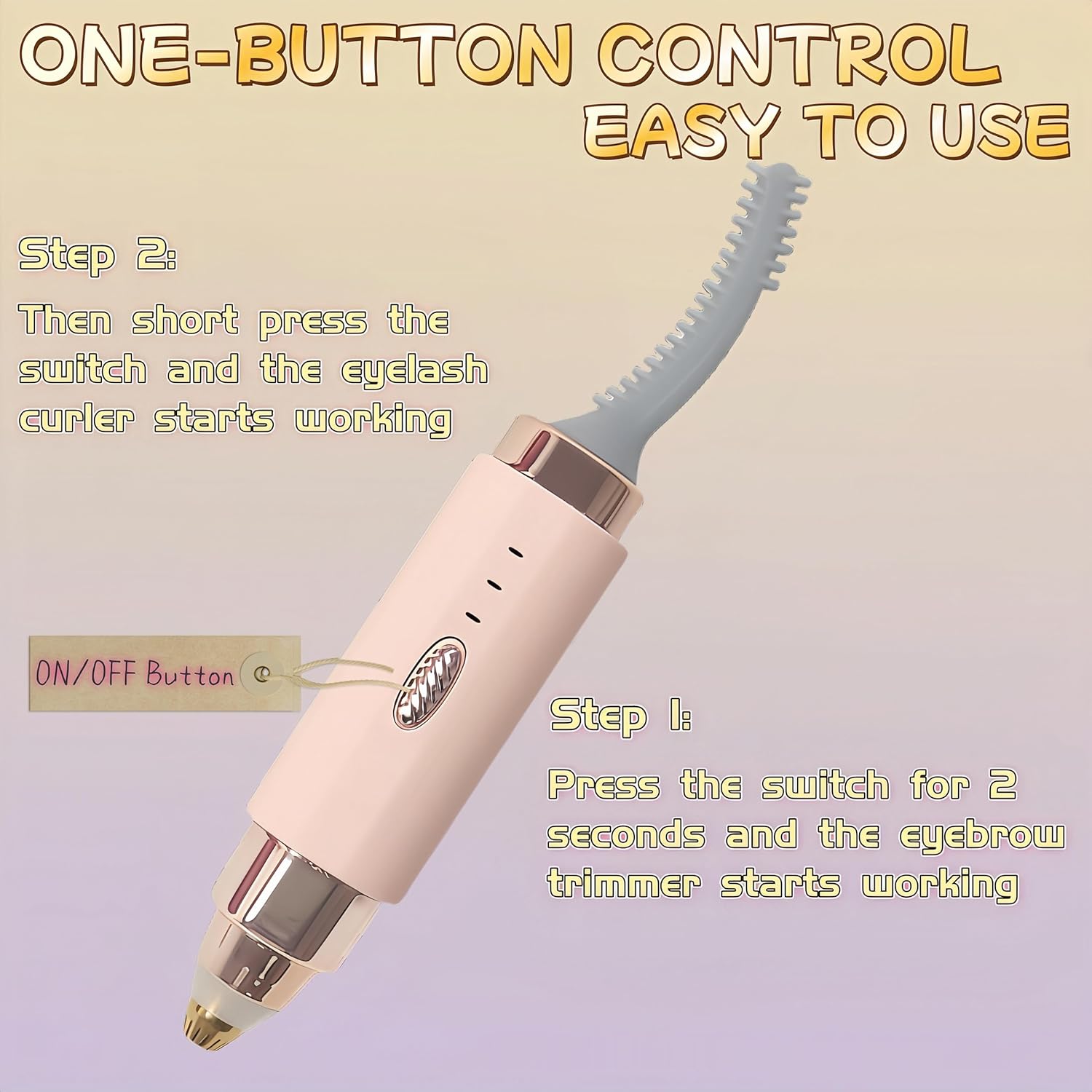 - 【One-Button Easy Operation】: Simplify your beauty routine with our heated eyelash curler and eyebrow trimmer, designed for effortless use. A single button lets you precisely choose the desired function: long-press for 2 seconds to activate the eyebrow trimmer, then short-press to switch to the eyelash curler. With its intuitive design, you can enjoy seamless operation, making it perfect for achieving stunning lashes and brows with ease