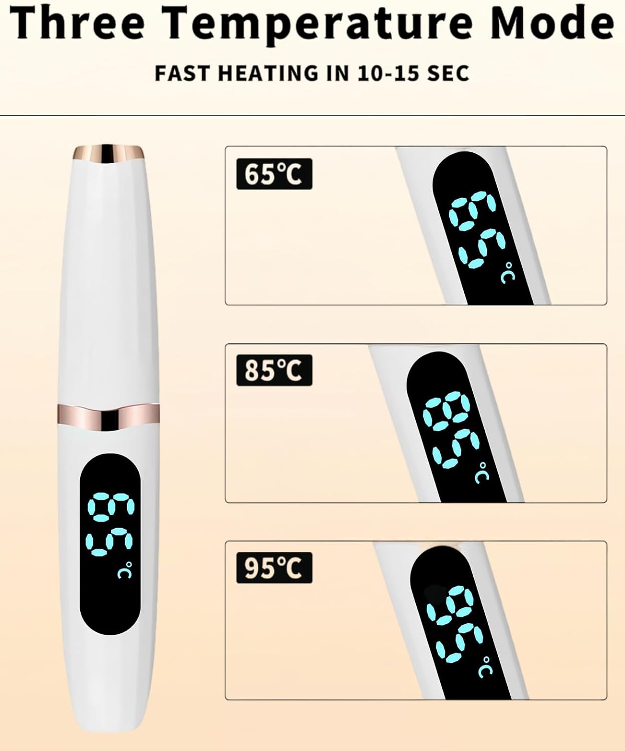 - 3 Temperatures modes and LED display: The heated eye lash curler features an LED display and three temperature settings: 65°C (149°F), 85°C (185°F), and 95°C (203°F). Easily adjust the temperature with a button for all lash types and makeup styles