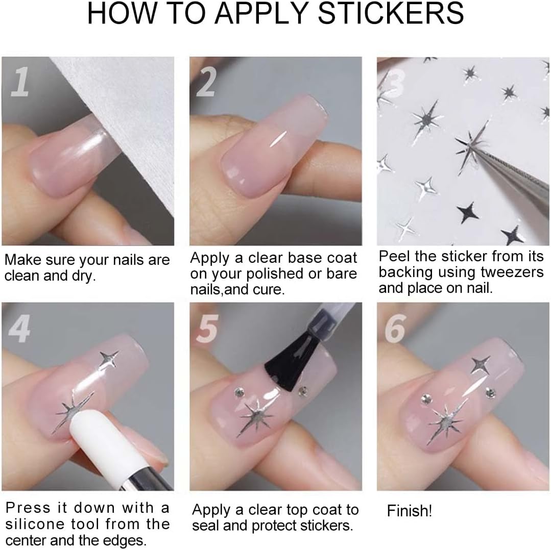 - Easy to use: Our gold stickers are self-adhesive and do not require glue. Simply peel off the sticker and apply it directly to your nail. You can also apply nail gel over the sticker for best results and to extend its lifespan