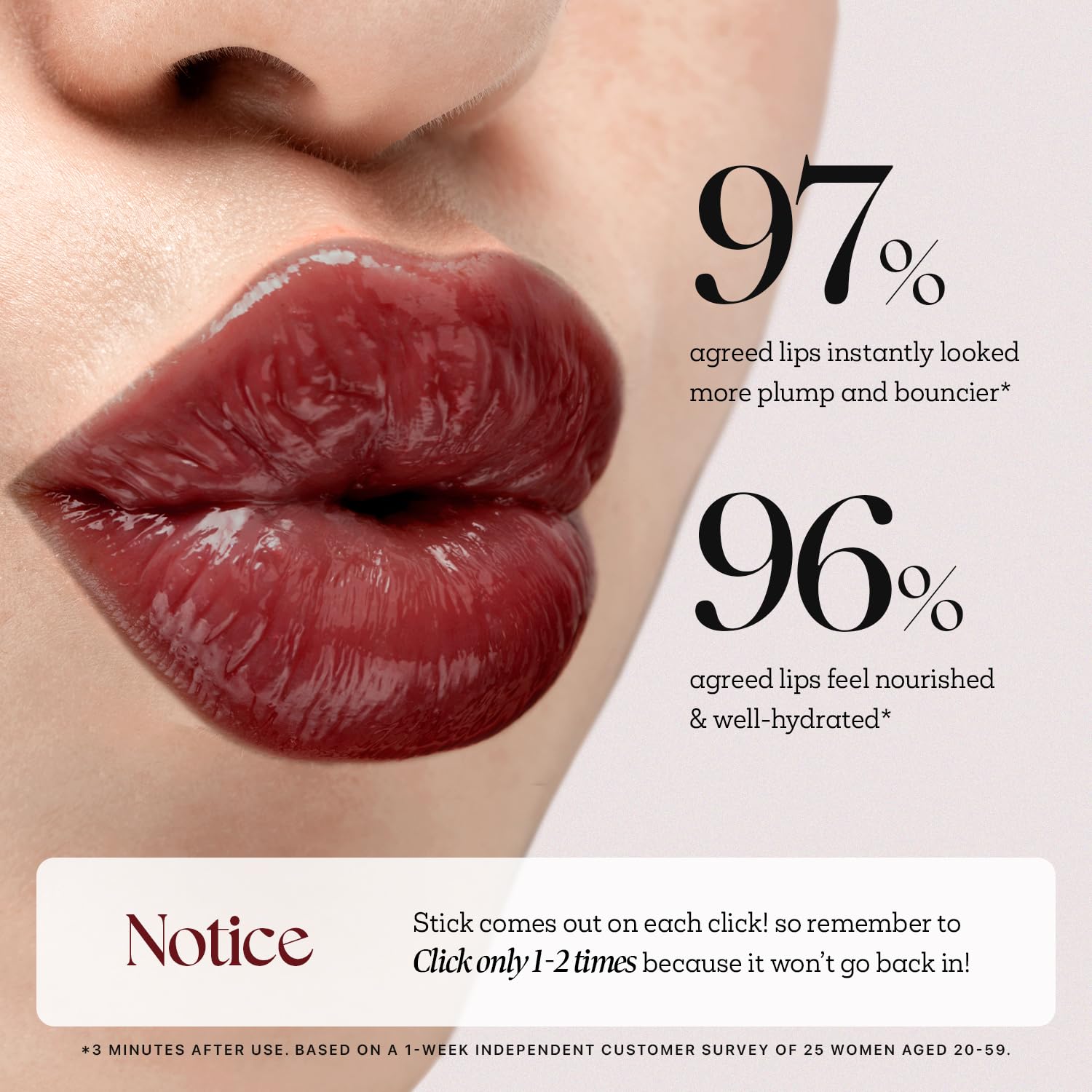 - 💗HOW TO USE: Please check, on one click the stick COMES OUT! Make sure you click "once" at a time because it won’t go back in. It’s a quick, easy and hygienic Honey Melting lip for you.